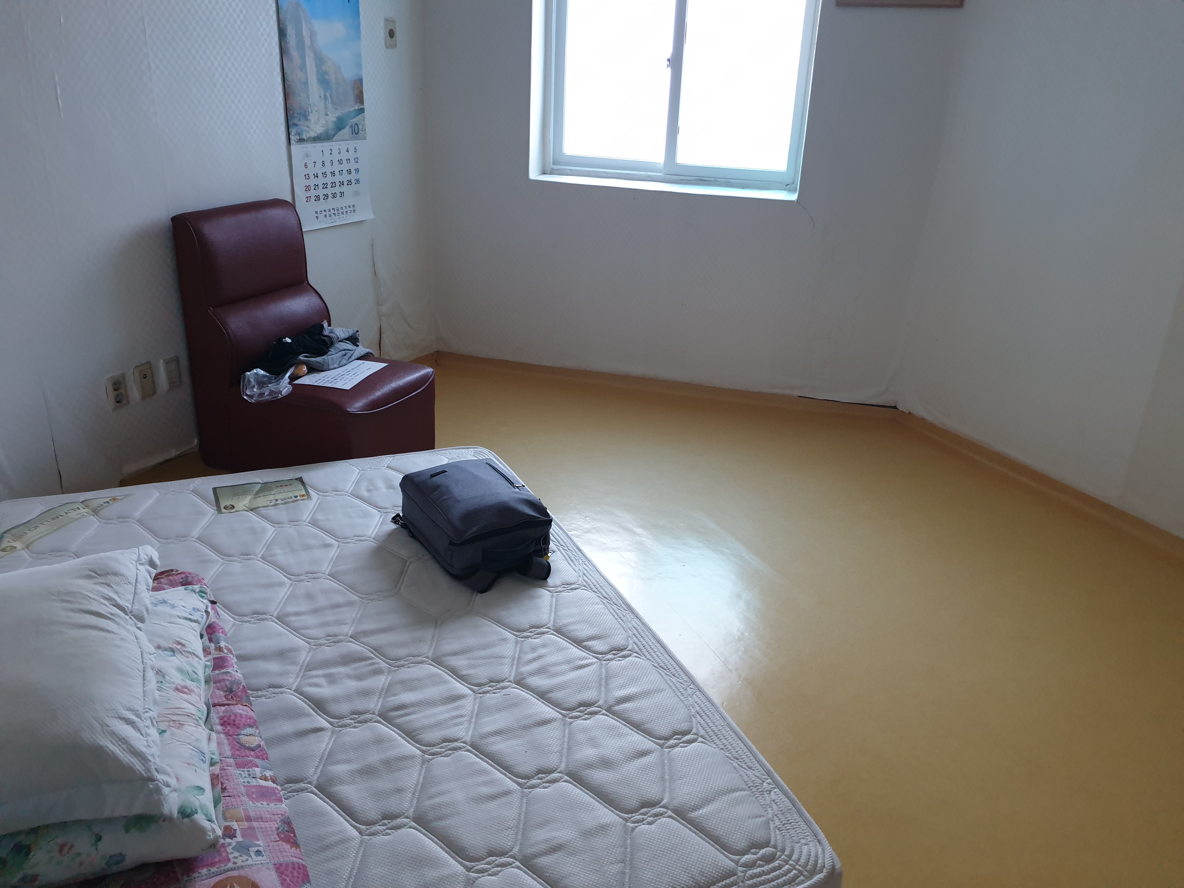 도착한 숙소에 짐을 풀었다. 외관은 모르겠지만 내부는 꽤 오래된 건물인 듯 했다. 다방에서나 볼 듯한 소파에 올려진 ‘예배시간표’는 얼마나 모일까 묻게 했다. 벽지 사이 갈라진 콘크리트 벽면은 냉기가 머물다 사라졌다. 소변기에 물이나 떨어질지 걱정될 만큼 추웠지만 다행히도 동파는 아니었다. 화장실을 다녀오자 화들짝 놀랐다. 엄지 크기 거미가 지네처럼 왔다 갔다 했다. 거미를 죽이고 매트 아래 바닥에서 대화를 나눴다. 기도원 원장님께서 흔쾌히 허락한 방에서.