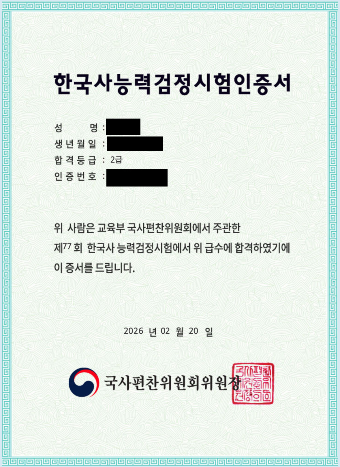 | [여자친구 2026 한능검 합격①] 실전에 강했다… 오천 년 한국사에 온몸으로 뛴 아쉬운 2급 ‘78점’ (0) | 2026.02.23 |